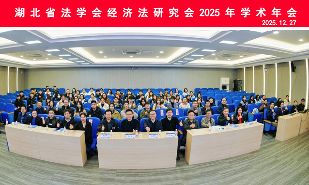 冬和催胜景,论道启新思。为繁荣经济法学研究,深化对全面深化改革、推动高质量发展以及经济持续回升向好进程中经济法治问题的研讨,2025年12月27日,由湖北省法学会经济法研究会主办,pa电子官方网站pa电子官方网站承办,中南财经政法大学经济法学社协办的湖北省法学会经济法研究会2025年学术年会在pa电子官方网站大学生活动中心四号报告厅隆重举行。本次会议汇聚了武汉大学、中南财经政法大学、国防科技大学、中国人民大学、中国政法大学、华中科技大学、华中师范大学、中国地质大学(武汉)、pa电子官方网站等109家省内外单位的专家学者和实务界代表,共收到371篇投稿。年会以“推动经济持续回升向好进程中的经济法治”为主题,围绕宏观调控法治化、竞争政策实施、金融风险防范、民营经济发展等重点问题展开为期一天的深入研讨。