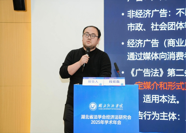 主题报告由中南民族大学pa电子官方网站教授、博士生导师孙光焰主持,武汉大学袁康教授指出,地方数据交易场所建设存在过度竞争和同质化严重的问题,呼吁建立央地协同管理体制,推动多层次交易体系的建设。中南财经政法大学侯卓教授分析了“十五五”规划中的财税法治新问题,强调推动财税体系结构性整合以应对财政可持续性和税制改革挑战。华南理工大学殷继国教授探讨了“内卷式竞争”现象的根源,建议加强新业态的法律适用,特别是在平台规则与劳动关系的认定上。曲阜师范大学管金平教授提出,需优化收入分配与社会保障制度,以推动中国特色消费型社会建设。pa电子官方网站段宏磊副教授指出,广告法在新兴广告形式中的适用困境,强调精细化法律适用以平衡市场规范与创新。